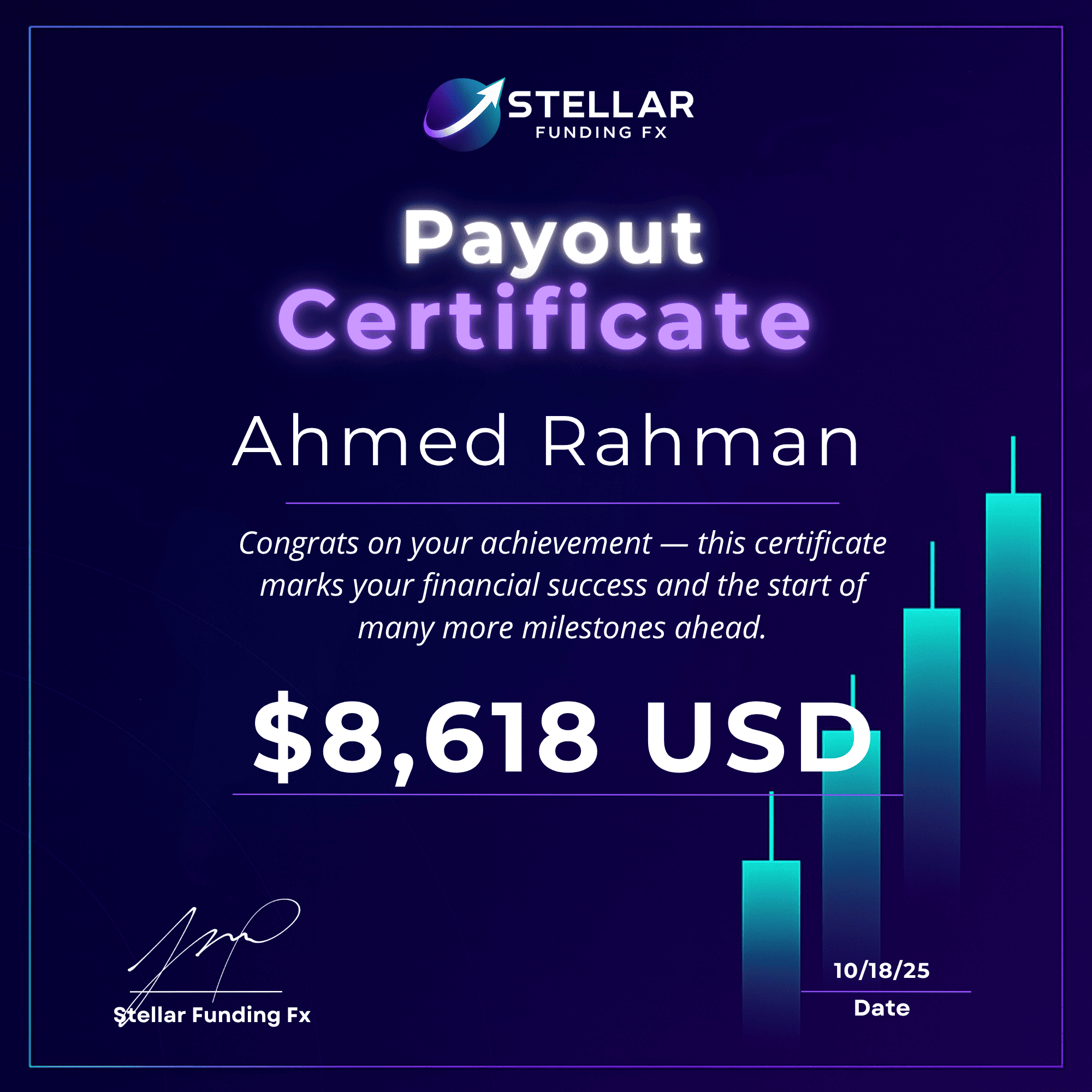At Stellar Funding Fx, traders showcase their skills through a simple evaluation. Meet the objectives and unlock access to up to $1M in trading power — no shortcuts, just pure performance.
